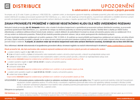 Upozornění k odstranění a okleštění stromoví a jiných porostů