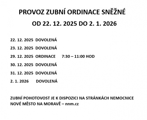Provoz zubní ordinace Sněžné