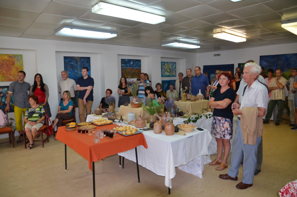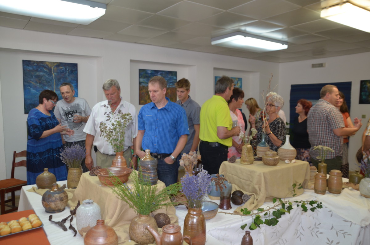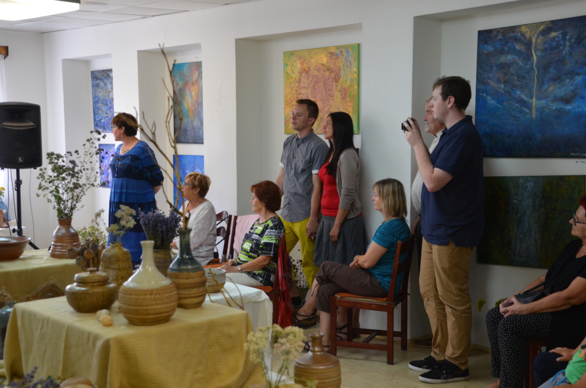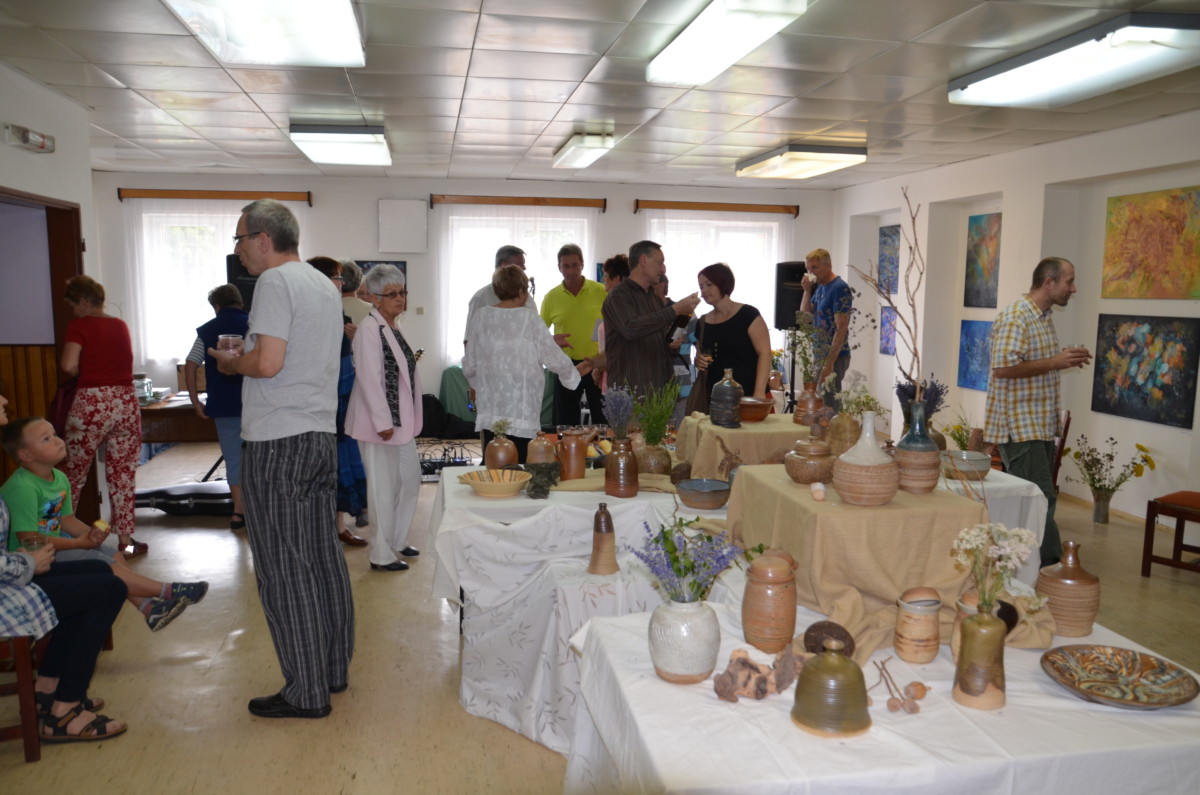 Fotografie z vernisáže Výstavy obrazů Jitky Páralové a keramiky Hany Krejsové dne 16.7.2017