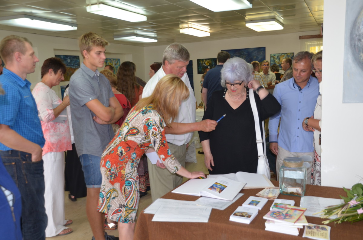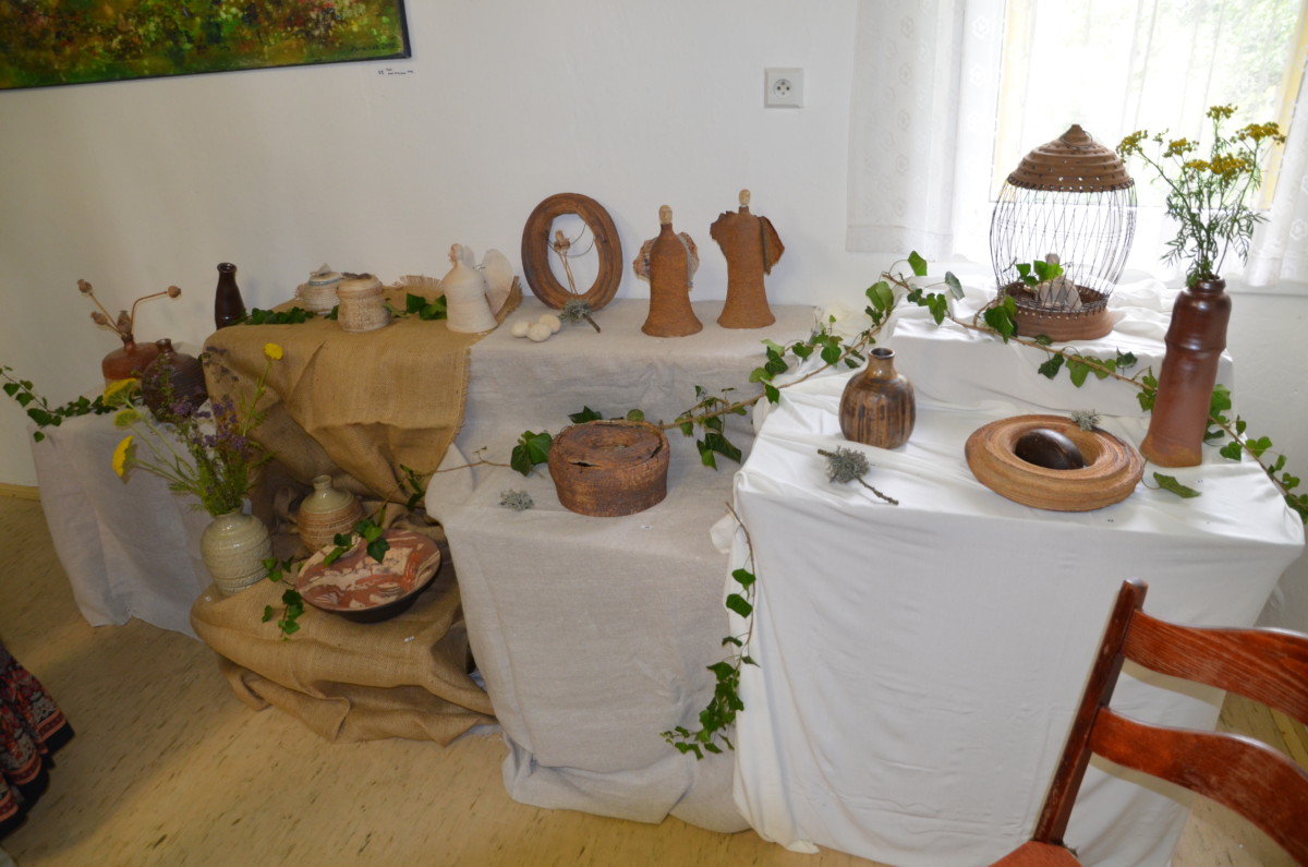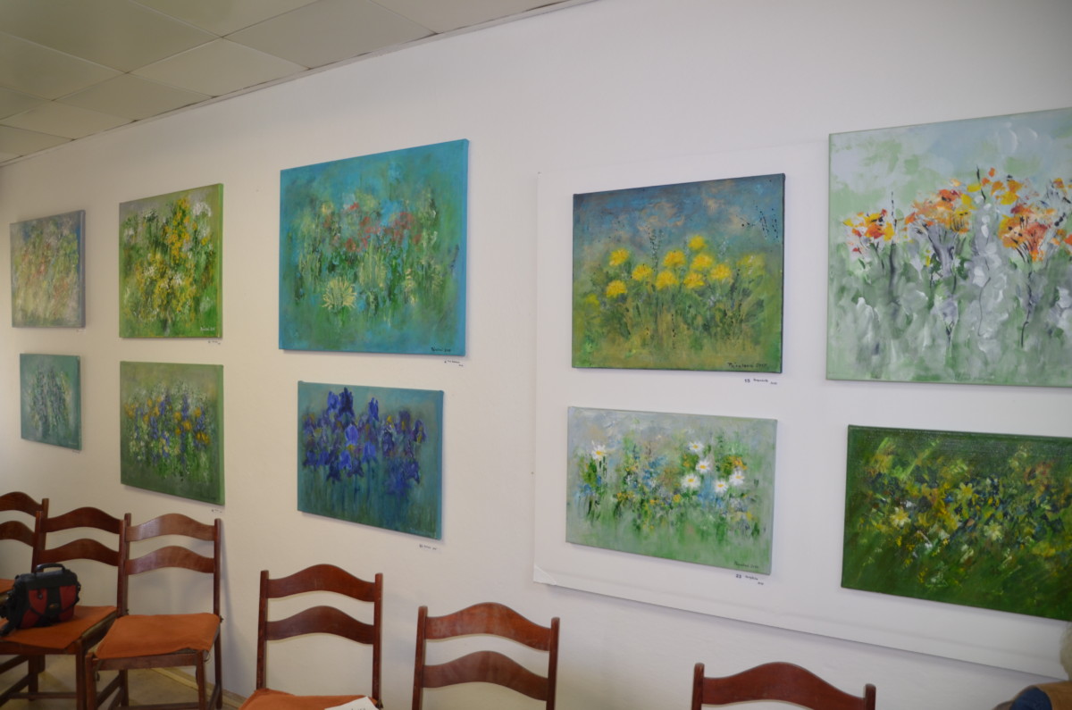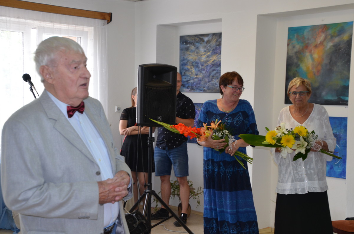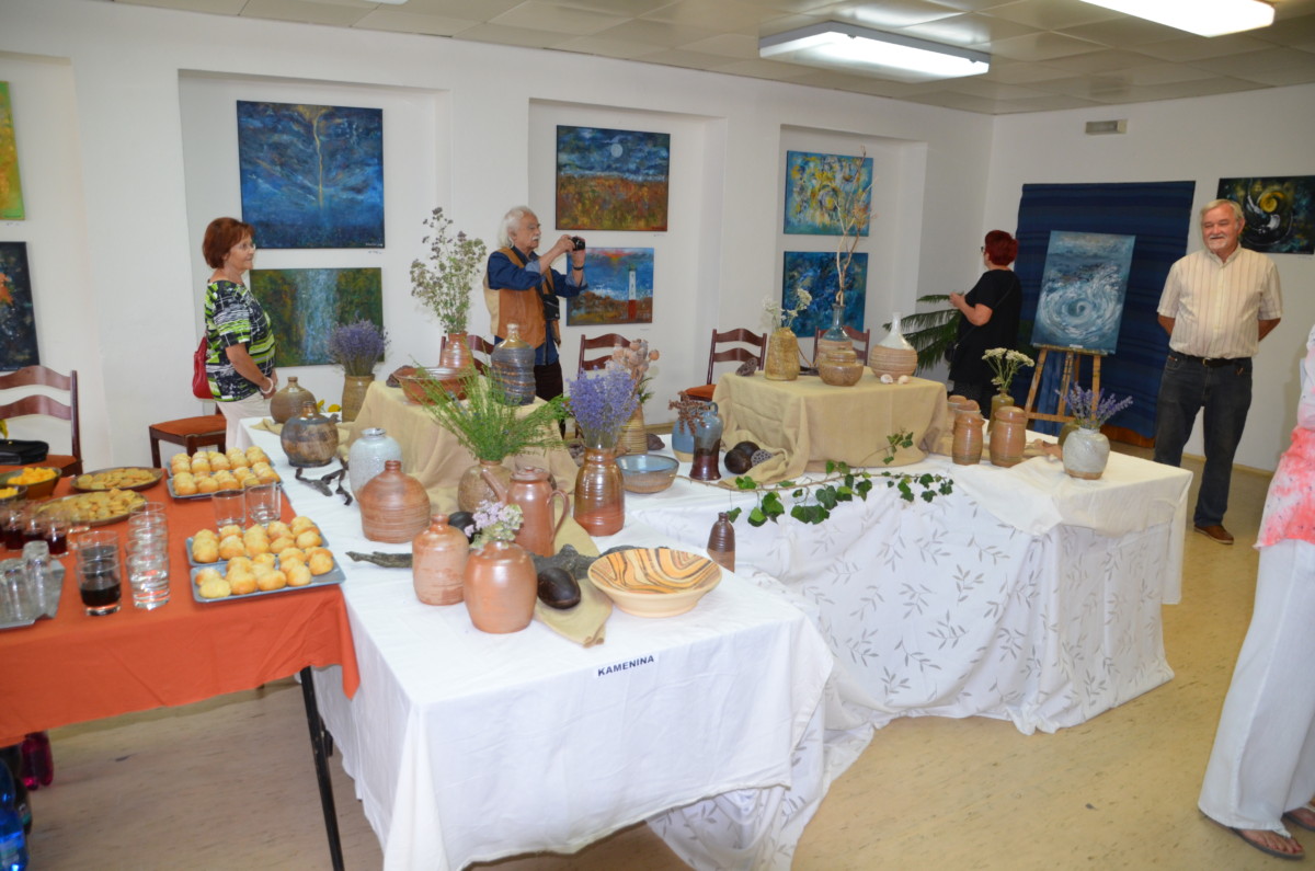 Fotografie z vernisáže Výstavy obrazů Jitky Páralové a keramiky Hany Krejsové dne 16.7.2017